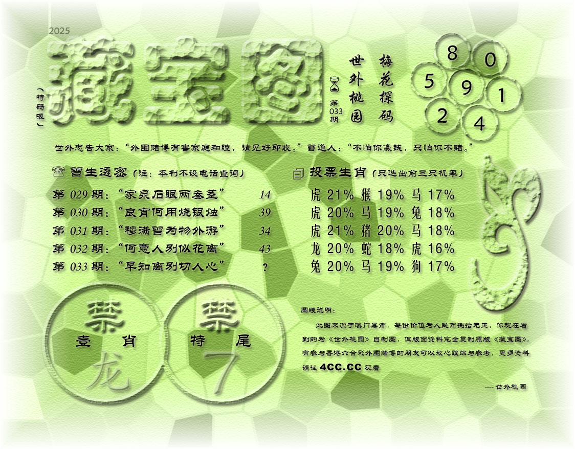 033期藏寶圖 新:断蓬衰草自斜阳 老:早知离别切人心 禁:龙 禁:7尾 玄機字:《可》